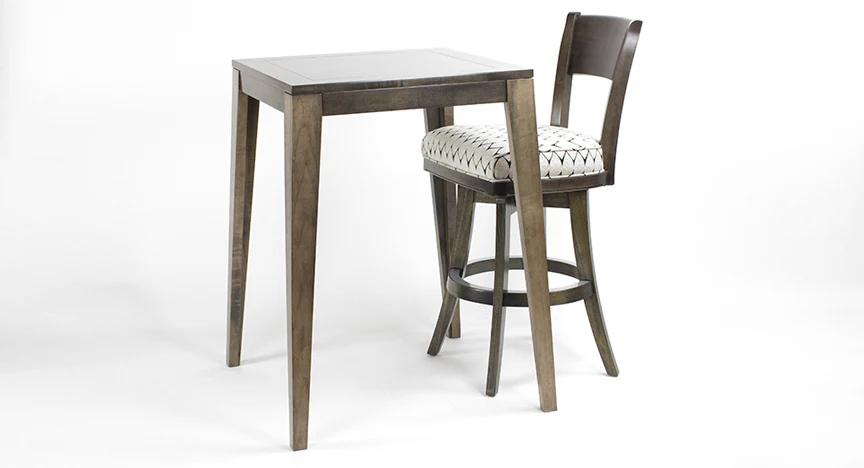 The Metro Pub Table features a transitional design and is the ideal dining solution for small spaces. Made to order in your choice of finishes.