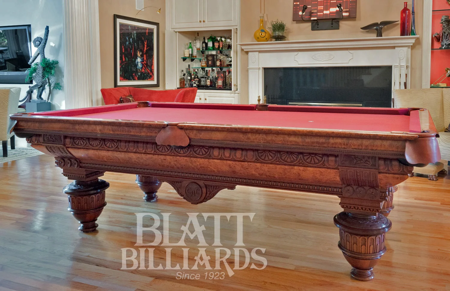 Designed for New York’s Friars Club. Hand carved plaques and turnings. Customizable crests. Features exotic burls.