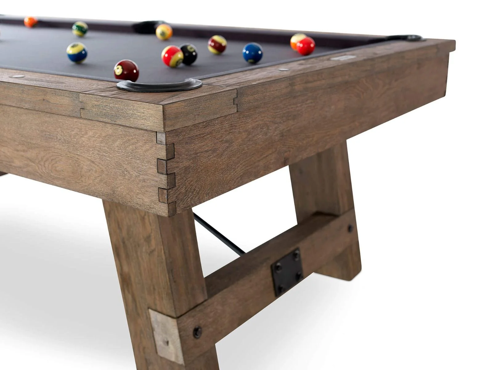 Isaac, with its steel turnbuckle, solid ash angled legs, and finger-jointed rails, Isaac makes for a stunner of a pool table. Grey tones wash over solid ash, creating a truly unique finish.